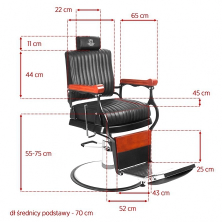 Jeśli w ofercie Waszego salonu oferują Państwo pielęgnację brody, możemy zaproponować idealny mebel do Twojego barbershop-u. Fotel Barberski MASTER. Wygodny fotel z szerokim zakresem regulacji zapewni maksymalny komfort zarówno osobie wykonującej zabieg jak i klientowi salonu. W fotelu możemy ustawić nie tylko wysokość. Możemy dogodnie dostosować nachylenie oparcia. podnóżka oraz długość zagłówka. Fotel MASTER to nie tylko komfort i łatwość regulacji, ale również niezwykle stylowy design. Idealnie wpasuje się we wnętrza zaaranżowane w starym stylu. Doskonale wykończony. Nawet najmniejsze detale wykonane z ogromną precyzją. Piękne obicie o oryginalnej teksturze. Eko-skóra wysokiej jakości, odporna na ścieranie i łatwa w pielęgnacji. Ciężka żeliwna podstawa zapewni meblowi idealną stabilność nawet przy dużym obciążeniu.
