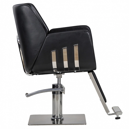 Ten w pełni profesjonalny fotel fryzjerski cechuje się bardzo oryginalnym designem. Fotel jest obrotowy oraz posiada możliwość regulacji wysokości wraz z siedzącym na fotelu  klientem. Obicie fotel zostało wykonane z wysokiej jakości skaju, a podstawa jest chromowana.