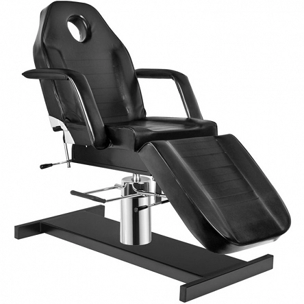 Activ Classic 210 to fotel obrotowy z blokadą, który jest podnoszony i opuszczany hydraulicznie. Mebel posiada otwór w zagłówku z zaślepką, doskonale sprawdza się w salonie kosmetycznym i do makijażu, a także do masażu. Fotel Activ ma wyjmowane podłokietniki oraz regulowane oparcie i podnóżek. Obicie fotela z eko-skóry jest łatwe do utrzymania w czystości. Fotel dostępny jest w kolorze czarnym.