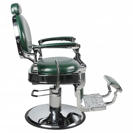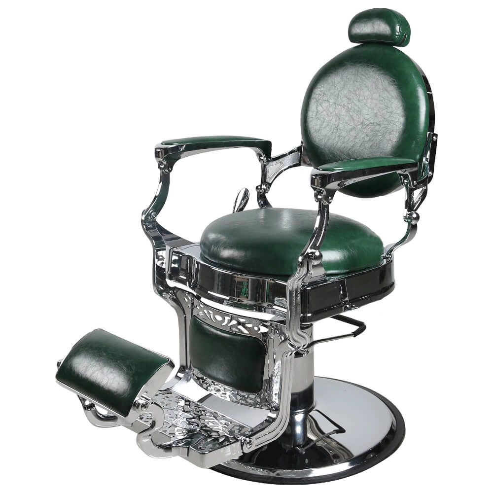 Krzesło Super Salon Tommy Green to wyjątkowa propozycja dla mężczyzn, którzy lubią mocne, męskie akcenty i nawiązanie dla klasycznych salonów fryzjerskich rodem ze starych filmów amerykańskich. Lśniący chrom w połączeniu z ciemną zielenią dadzą oryginalny efekt męskości, luksusu i klasyki.