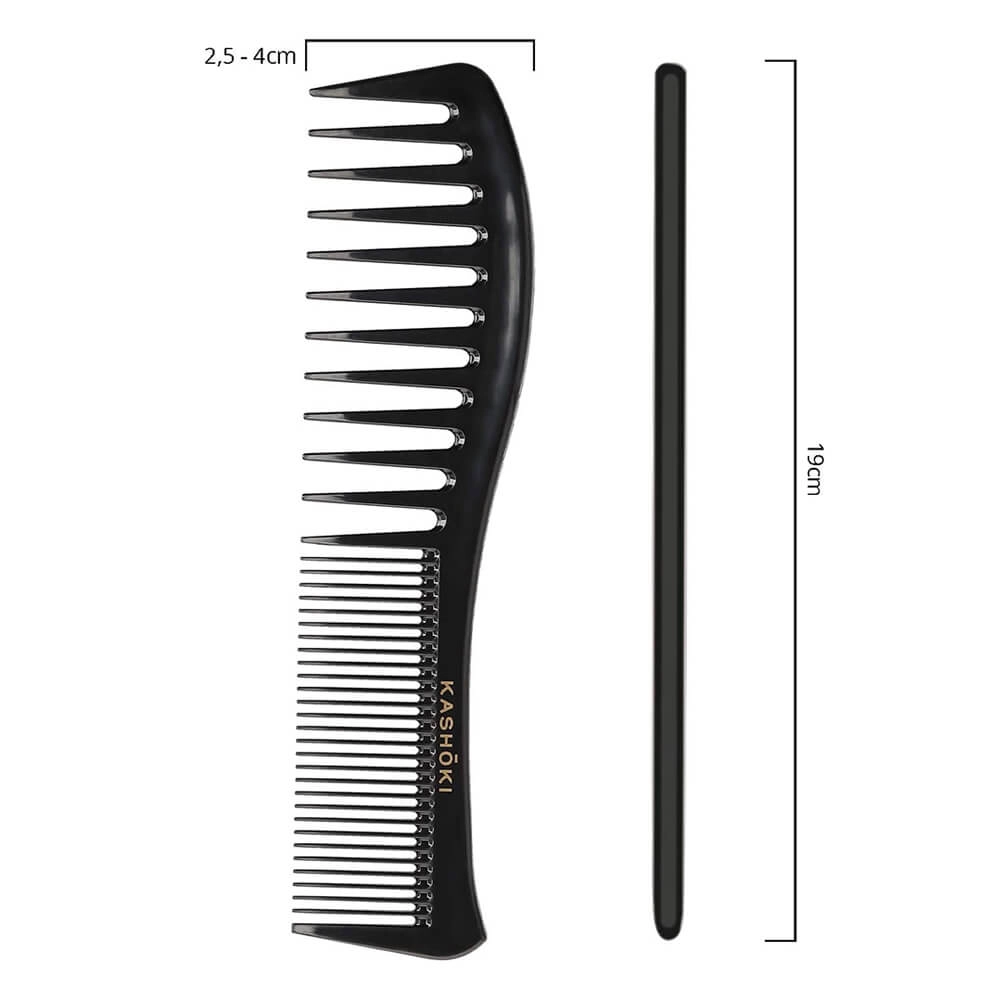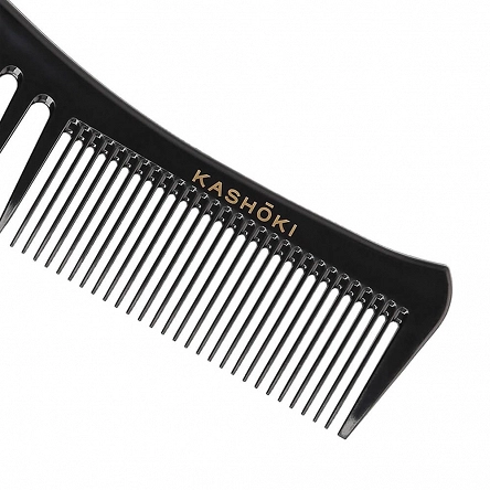 Grzebień Kashōki Tomoko 436 ma zęby o nieregularnym rozstawieniu i dwóch grubościach, dlatego jest doskonały zarówno do czesania, jak i do modelowania włosów. Świetnie sprawdza się w rozczesywaniu loków (naturalnych lub po trwałej ondulacji). Grzebień Tomoko wykonany jest z eleganckiego, czarnego, mocnego plastiku najwyższej jakości, dzięki czemu jest trwały, a przy tym lekki i wygodny w użyciu. Nie uszkadza włosów i nie podrażnia skalpu. Można nim czesać włosy na mokro lub na sucho, nadaje się do użytku profesjonalnego, a także domowego.