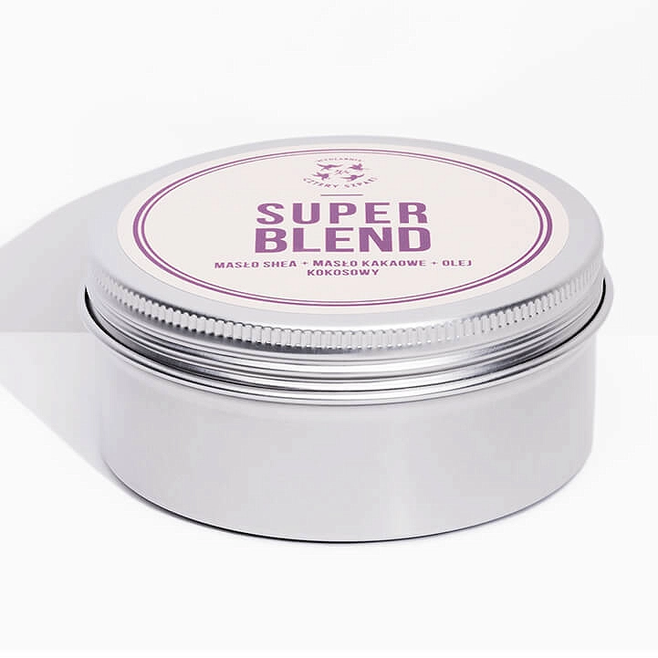 Masło 4 Szpaki zawiera witaminy A i E, które odmładzają i chronią skórę przed wolnymi rodnikami. Zapewni jej głębokie natłuszczenie, odżywienie i uelastycznienie. Wśród licznych zalet tego kosmetyku z pewnością należy wymienić działanie antywirusowe, bakteriobójcze, przeciwgrzybicze, a także spowalnianie procesów starzenia skóry i ochronę przed nie bez powodu cieszącymi się złą sławą wolnymi rodnikami. To wszystko dzięki dużej zawartości przeciwutleniaczy. Super Blend można stosować na skórę całego ciała. Ochroni ją także przed niesprzyjającymi warunkami atmosferycznymi i przenikaniem toksyn do organizmu. Nierafinowany zimnotłoczony olej kokosowy - działa antybakteryjnie, antywirusowo i przeciwgrzybiczo. Nierafinowane zimnotłoczone masło Shea, na którym między innymi bazuje Super Blend regeneruje i odżywia skórę, przyspiesza gojenie drobnych ranek. Masło Super Blend to kompozycja, w skład której wchodzą: nierafinowane masło Shea, nierafinowane masło kakaowe i nierafinowany olej kokosowy. Masło kakaowe zapobiega przenikaniu toksyn z otoczenia, regeneruje i chroni przed oddziaływaniem wolnych rodników. Głęboko natłuszcza skórę i chroni ją przed zimnem, wiatrem i mrozem.