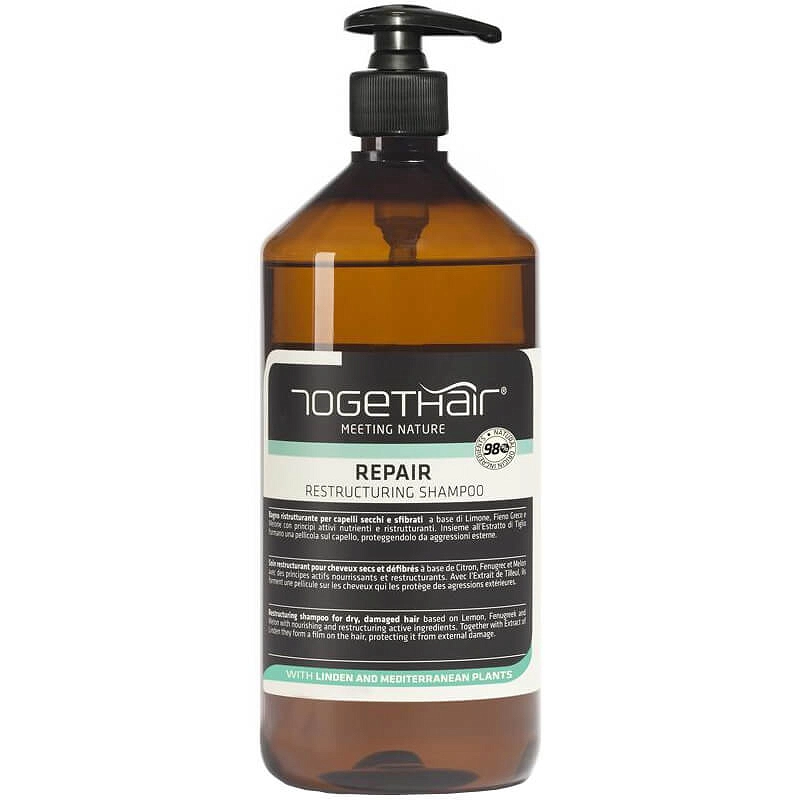 Togethair Repair to profesjonalny szampon odbudowujący włosy suche i zniszczone, którego skuteczne działanie opiera się na bazie składników naturalnych: cytryny, kozieradki pospolitej i melona z aktywnymi składnikami odżywczymi i odbudowującymi. Łącznie z ekstraktem z lipy substancje te tworzą na skórze specjalną powłokę, chroniąc ja przed działaniem czynników zewnętrznych.