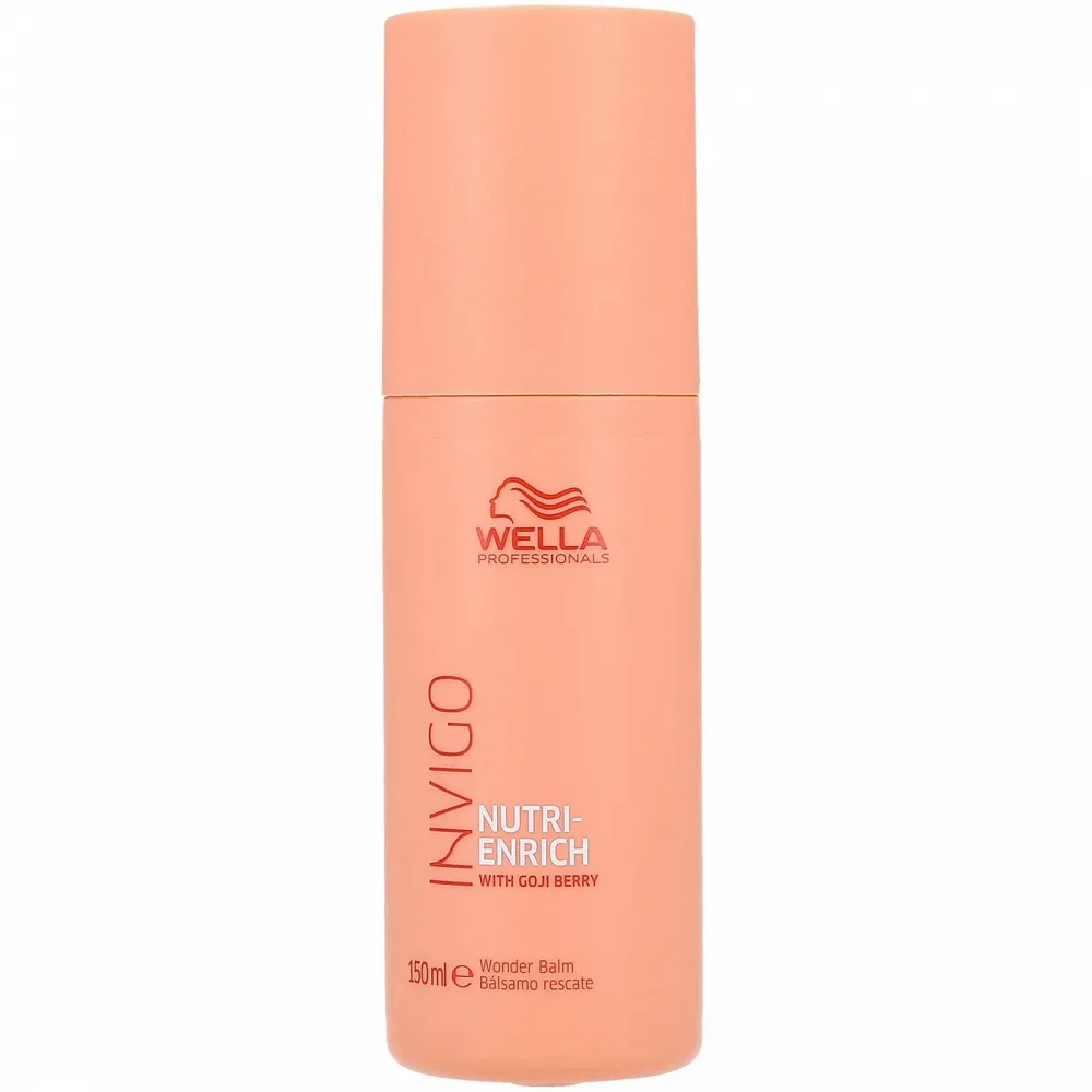 Odżywka Leave-In Wella Invigio Enrich do pielęgnacji suchych i osłabionych włosów do zastosowania zarówno w domu jak i w salonie fryzjerskim. Zawiera formułę bogatą w kwas oleinowy, Pantenol, jagody goji i witaminę E. Składniki te dostarczają włosom niezbędnych minerałów, peptydów i witamin, dzięki czemu stają się one odżywione i nawilżone.
