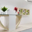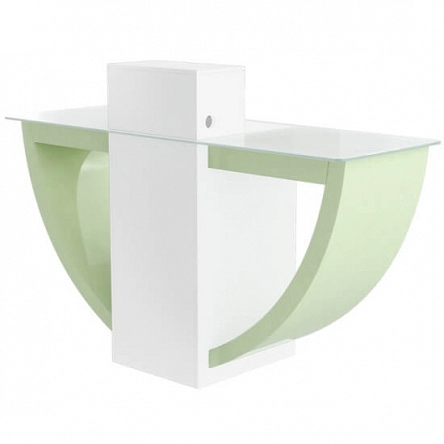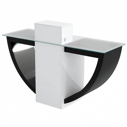Blat – szkło piaskowane o grubości 8mm.System modułowy daje możliwość indywidualnej aranżacji: jedno – lub dwustronna, prawo- lub lewostronna. Nadstawka na sprzęt PC zapewnia maksymalne wykorzystanie powierzchni, stałą cyrkulację powietrza i wysoką trwałość materiału.