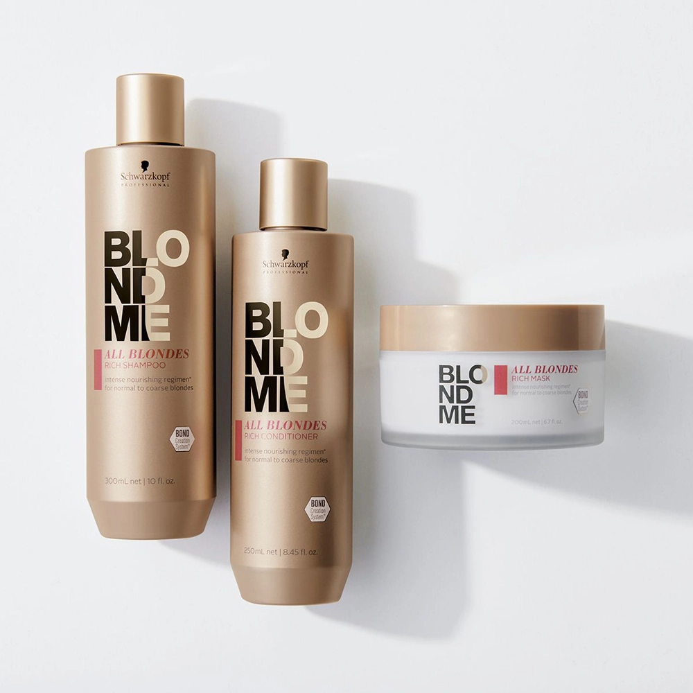 BlondMe Light Shampoo zawiera nawilżający panthenol oraz proteiny jedwabiu morwowego Silk Protein Complex. Jedwab wiąże wilgoć we włosach. Dzięki świetnej recepturze dedykowanej włosom blond szampon All Blondes wzmacnia włosy, dodaje im miękkości, blasku i sprężystości. Ciesz się pięknym blondem z linią BlondMe!