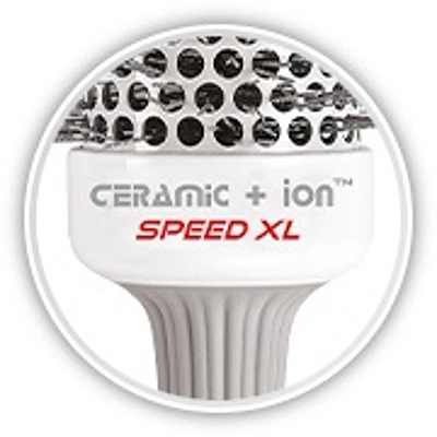 Szczotka Olivia Garden Ceramic-Ion Speed XL jest stworzona z myślą o szybkim i dokładnym modelowaniu włosów. Posiada korpus z ceramiczną powłoką, który nie nagrzewa się od ciepła suszarki, nie ma więc ryzyka poparzenia. Szczecina szczotki jest jonizowana, co oznacza, że zapobiega elektryzowaniu się włosów i puszeniu. Duże i liczne otwory w szczotce powodują lepszy przepływ powietrza, dzięki czemu modelowanie trwa krócej. Na końcu znajduje się wyjmowany szpikulec, którym rozdzielisz pasma włosów podczas modelowania. Rączka szczotki pokryta jest antypoślizgowym materiałem, pewnie więc trzyma się ją w dłoni.