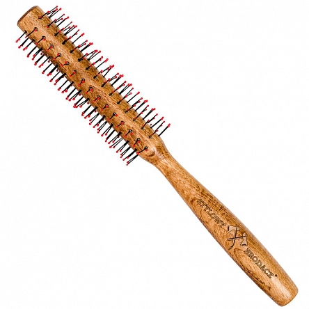 Szczotka Stylowy Brodacz Roller została wykonana z wytrzymałego naturalnego drewna bukowego. Jej nylonowe ząbki zakończone są kulkami żywicy. Posiadają właściwości antystatyczne i nie ranią skóry głowy.  Szczotka świetnie nadaje się do modelowania włosów podczas suszenia. Dzięki niej łatwo uzyskasz klasyczne zaczeski i pomp, a także uniesiesz włosy u nasady.